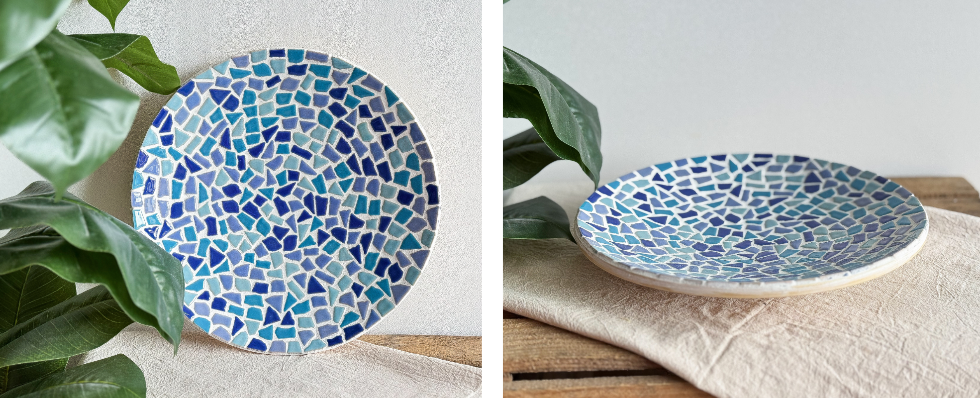 Gestalte eine Schale mit Mosaik mit dem DIY-Set für Dezember. Selbstverständlich erhältst du alle Materialien sowie eine ausführliche Anleitung! Du erhältst automatisch eine E-Mail, in der wir dich bitten, eine Farbauswahl zu treffen: Blau, Grün, Pastell, Altrosa oder Sand.