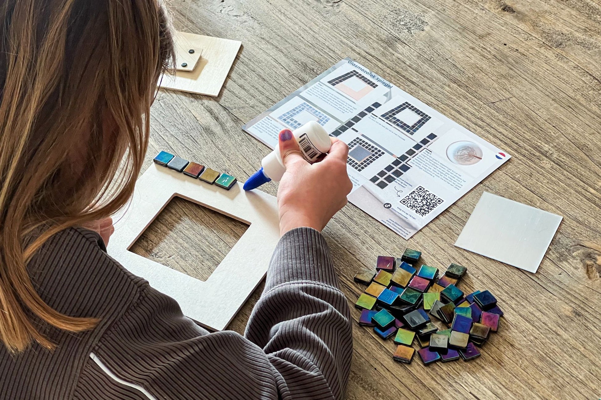Entdecke das DIY Glas Mosaik Spiegel Bastelset, speziell entwickelt für kreative Teenager, die ihren eigenen Stil zum Ausdruck bringen möchten! Mit diesem farbenfrohen Bastelset Spiegel gestaltest du einen modernen Spiegel, der perfekt in jedes Jugendzimmer passt. Du dekorierst den Holzrahmen mit echtem Glas Mosaik und erschaffst Schritt für Schritt ein individuelles Kunstwerk.