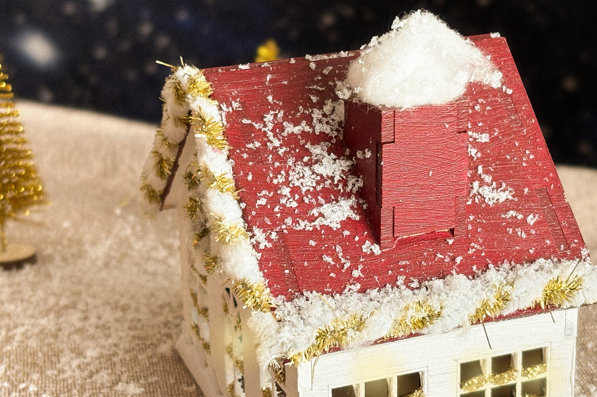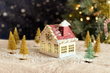 Holz-Weihnachtshäuschen (zum Zusammenbauen). Abmessungen: Breite 10,7 cm x Höhe 10 cm x Tiefe 8,5 cm