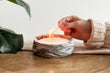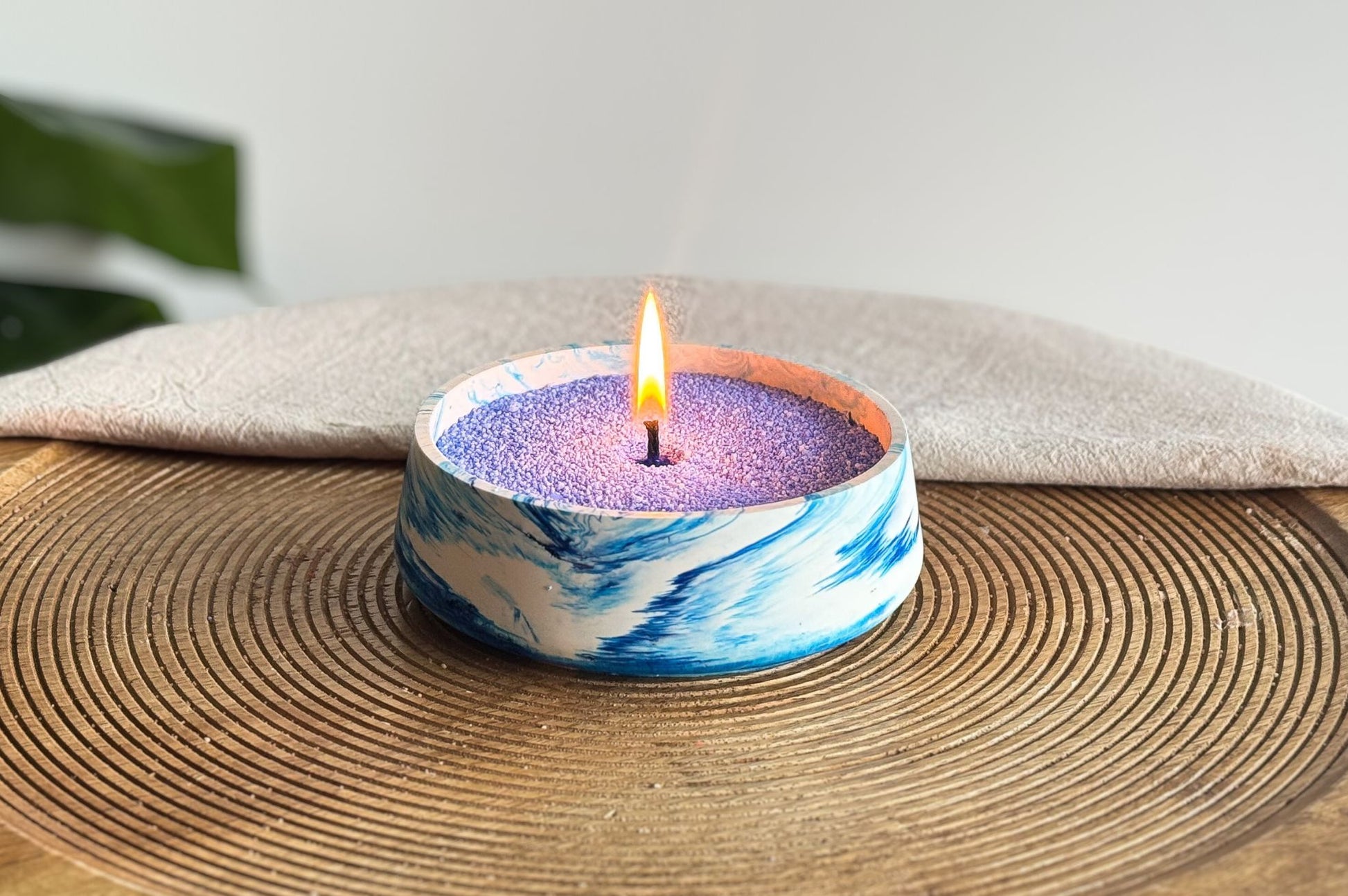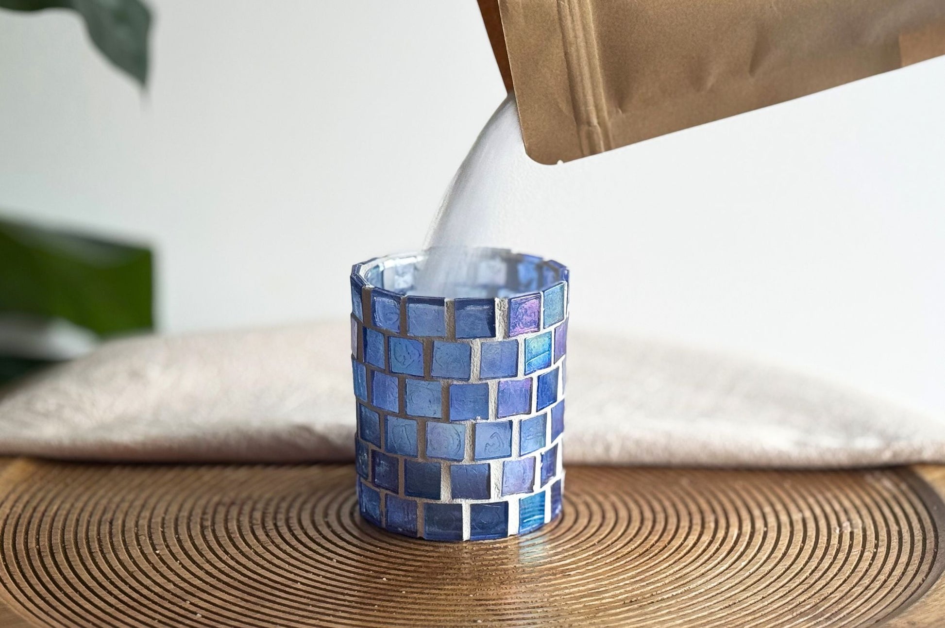 Fülle einen hitzebeständigen Behälter oder eine dekorative Kerzensand-Schale mit dem Sand, setze einen Docht ein und zünde ihn an. Ist der Docht abgebrannt, einfach einen neuen einsetzen, der Sand ist wiederverwendbar! Für einen eleganten Look mische Pigmentpulver für kräftige Farben oder lasse den Kerzensand weiß für einen minimalistischen Stil.