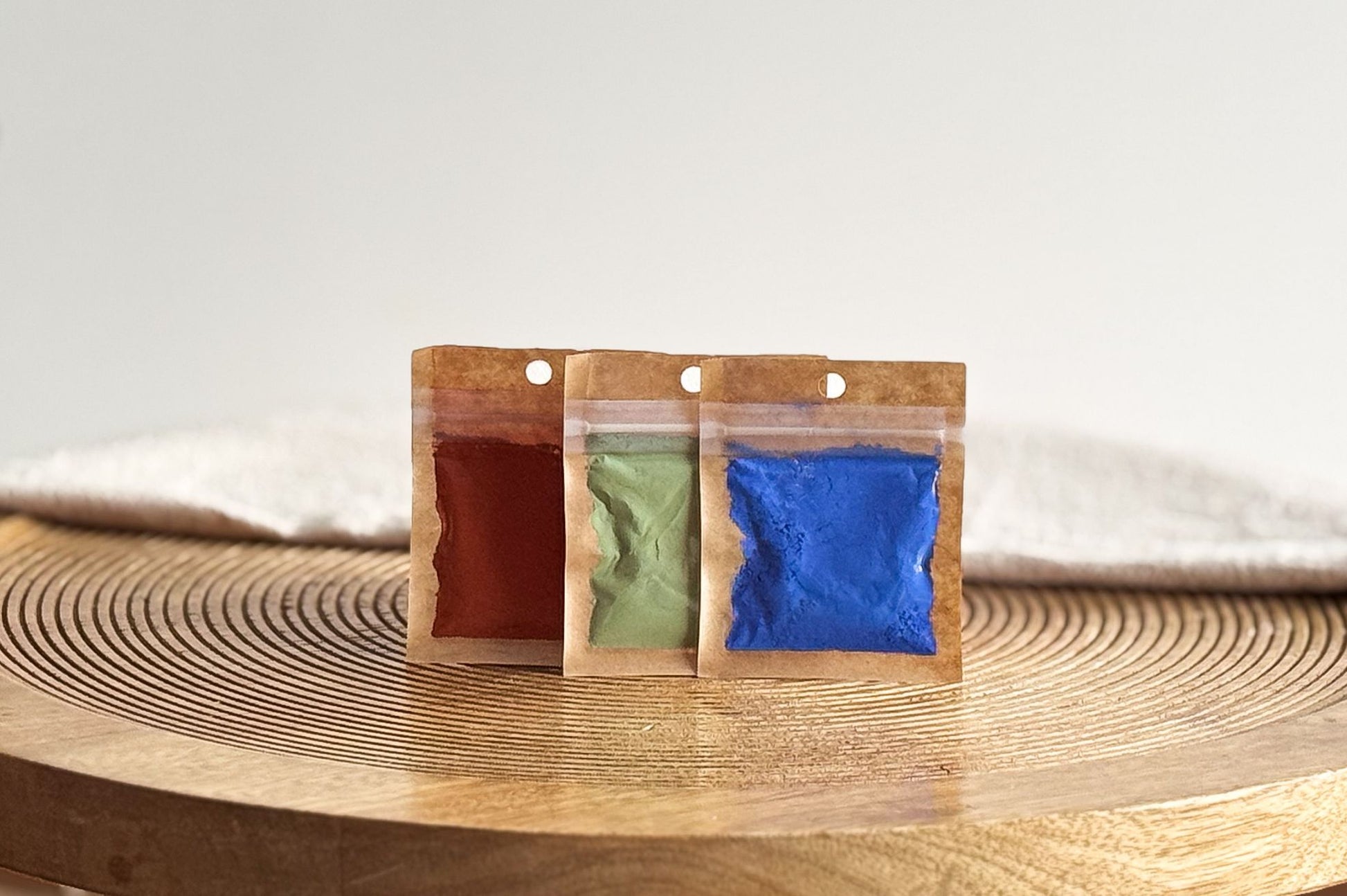- Pigmentpulver in deiner Lieblingsfarbe: Grün, Terrakotta oder Blau